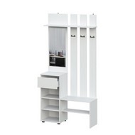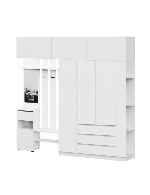 Технические характеристики: Прихожая Бали комплект 27 (белый). Функциональный мебельный ансамбль для компактной прихожей, предлагающий основные решения для хранения в лаконичном исполнении. Включает вешалку с зеркалом, угловой элемент, трехстворчатый шкаф и три верхних шкафа. Шкафы оснащены распашными дверцами, а ящики вешалки и трехстворчатого шкафа — роликовыми направляющими. Комплект решает базовые задачи организации: размещение верхней одежды и обуви, хранение аксессуаров и использование углового пространства, создавая при этом визуально легкую и упорядоченную среду. Прихожая Бали комплект 27 — это практичное и сбалансированное решение для современных интерьеров, где важно максимально использовать доступное пространство, не перегружая его визуально.