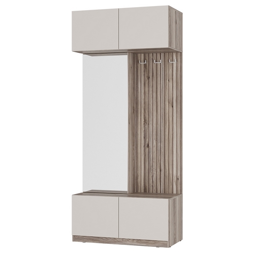 Особенности: Прихожая Урбан ПР-03 сочетает в себе функциональность и компактность. Фасад прихожей декорирован реалистичной фотопечатью, имитирующей вертикальные деревянные рейки. Прихожая Урбан оснащена закрытыми полками для горизонтального хранения, что позволяет удобно размещать различные вещи. Верхние две полки с распашными дверцами подходят для хранения аксессуаров и головных уборов. Центральное отделение прихожей оснащено полками небольшой глубины с дверцей с зеркалом и открытым отделением с тремя крючками для повседневной верхней одежды. Нижняя тумба с распашными дверцами отлично подойдет для хранения обуви. Корпус и фасады изготовлены из прочного и долговечного ЛДСП. Распашные дверцы с накладными пластиковыми ручками добавляют изделию современный и лаконичный вид. Кромка толщиной 0,45 мм обеспечивает аккуратный и эстетичный вид. Пластиковые крючки выдерживают нагрузку до 5 кг, что позволяет размещать на них верхнюю одежду или сумки. Пластиковые опоры с подпятниками обеспечивают устойчивость и защиту напольного покрытия. Накладные петли створок оснащены доводчиком. Толкатели с магнитом обеспечивают плавное закрывание дверок. Зеркало с еврокромкой добавляет функциональности и визуально расширяет пространство. Крепление к стене с помощью уголка овербаланс обеспечивает дополнительную устойчивость конструкции. Максимальная нагрузка на полку составляет 10 кг. Можно компоновать с другими элементами из серии мебели Урбан. Поставляется в разборном виде. Инструкция в комплекте.