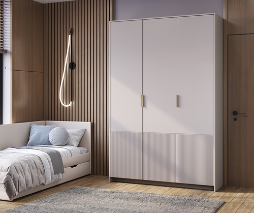 Особенности: Трехдверный распашной шкаф Пандора ШК-06 представляет собой стильное и функциональное решение для хранения одежды, белья и других вещей. Шкаф Пандора ШК-06 прекрасно впишется в интерьер любой комнаты, будь то прихожая, гостиная или спальня. Шкаф оснащен тремя распашными дверями, что обеспечивает удобный доступ к содержимому и в нем имеются бельевые полки и евроштанга для верхней одежды на плечиках. Фасад из МДФ с фрезеровкой в вертикальную полосу придает шкафу оригинальный внешний вид. На дверцах шкафа установлены вкладные, полунакладные петли и торцевые ручки из АБС пластика золотистого цвета. Опоры шкафа оснащены подпятниками из пластика черного цвета. Максимальная нагрузка на полку составляет 10 кг, а на штангу - 5 кг. Толщина кромки составляет 0,4 мм. Можно компоновать с другими модулями из серии мебели Пандора. Поставляется в разобранном виде. Шкаф Пандора ШК-06 имеет возможность сборки на обе стороны (универсальная сборка).