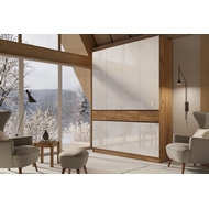 Шкаф четырехстворчатый Роджина (дуб крафт, белый глянец)