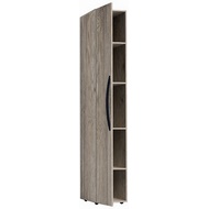 Технические характеристики: Шкаф-пенал для белья с распашной дверцей. Оснащен четырьмя полками, которые можно регулировать по высоте. Ударопрочная кромка ПВХ 2 мм. Крепится на стену за подвесы. Регулируемые опоры, которые помогут компенсировать неровности пола. Возможна левосторонняя и правосторонняя сборка.