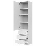Ширина, см: 50,1. Высота, см: 200,3. Выступ, см: 43,3. Размер упаковки, (мм): 2035x545x50, 625x450x95. Вес (кг): 46. Компоненты, входящие в комплект: 1 дверца, 3 ящика, 4 полки. Стиль: модерн. Страна-производитель: Россия. Объем (м3): 0.082. Количество секций для хранения: 3. Основной цвет: разноцветная. Материал фасада: ЛДСП Е1. Материал корпуса: ЛДСП Е1. Тип поверхности корпуса: матовый. Место размещения: Пол. Помещение: Гостиная, Кабинет, Прихожая, Спальня. Гарантия (месяц): 24. Основное помещение: Гостиная. Цвет корпуса: белый. Цвет фасада: белый.