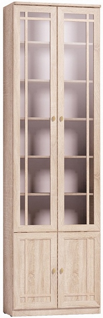 Технические характеристики: Шкаф состоит из 2-х отделений: верхнего со стеклянными вставками и нижнего. Внутри шкафа - 7 полок. Высота полок регулируется, что позволяет поставить на полки книги и альбомы разного формата. Рамочные фасады из профиля МДФ. Стекло дверей тонированное - защищает книги от попадания прямых солнечных лучей. Шкаф крепится к стене за подвесы. Нагрузка на 1 полку до 12 кг. Шкаф выпускается без выборки под плинтус, чтобы каждый мог прирезать плинтус индивидуально по своим размерам. Поставляется в разобранном виде.
