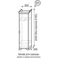 Технические характеристики: Внутри шкафа расположены две полки и выдвижная перекладина для вешалок. Дверь: левое и правое исполнение (указывайте при заказе). Дверные петли с доводчиками. Регулируемые опоры. Поставляется в разобранном виде.