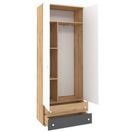 Особенности Шкафа для одежды и белья Лойс 92: Выдвижная штанга и комплект полок. Ручки с покрытием soft-touch. Комбинированные фасады. Шариковые направляющие полного выдвижения на ящикахю