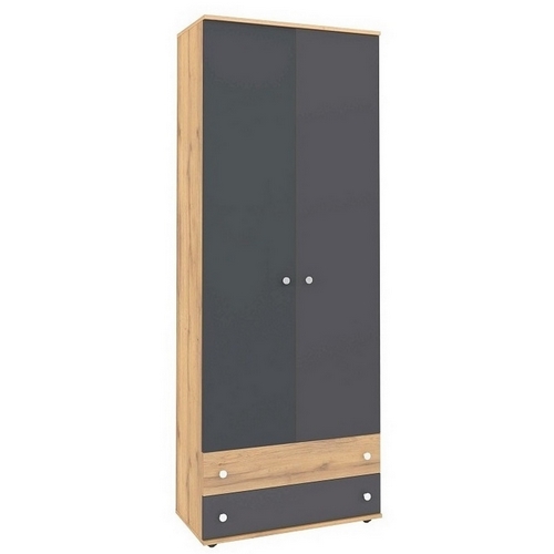 Особенности Шкафа для одежды и белья серый Лойс 92: Выдвижная штанга и комплект полок для одежды и белья. Ручки с покрытием soft-touch. Комбинированные фасады. Шариковые направляющие полного выдвижения на ящиках.