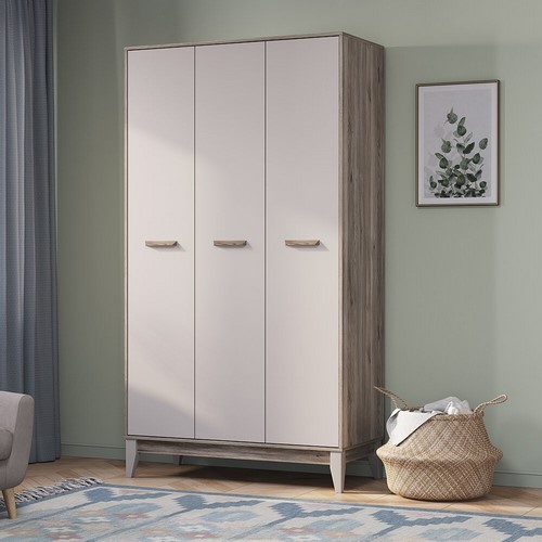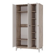 Дополнительно: Шкаф для одежды и белья Скандика - 3-х секционный распашной шкаф для спальни, гостиной или прихожей. За одной дверцей размещены 2 просторные открытые полки и секция с хромированной штангой для вешалок, а за другой – шесть открытых полок. Створки плотно фиксируются на магнитах. Не универсальная сборка. Дополнительные полки к шкафу не предусмотрены. Эмалированные деревянные опоры из бука высотой 20 см. Максимальная нагрузка на полку – 10 кг.