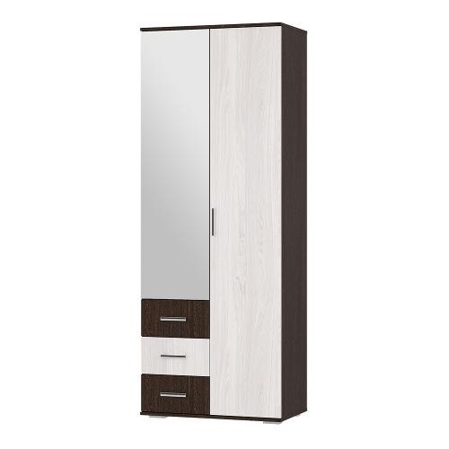 Особенности: Оснащён тремя выдвижными ящиками и зеркалом на одной из дверей. Внутри шкафа расположена металлическая перекладина для вешалок и полка.