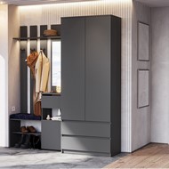 Особенности: Стильный двухдверный шкаф для одежды и белья Денвер графит с двумя выдвижными ящиками подойдет для любого современного интерьера. Скрытая фурнитура. Направляющие роликовые. Штанга - 1 шт. Фурнитура в комплекте. Нагрузка на полки 10 кг. Нагрузка на ящики 5 кг.