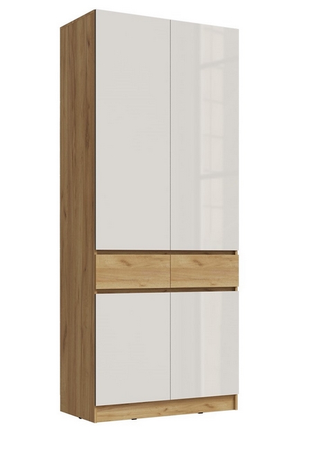 Шкаф двухстворчатый Роджина (дуб крафт, белый глянец)