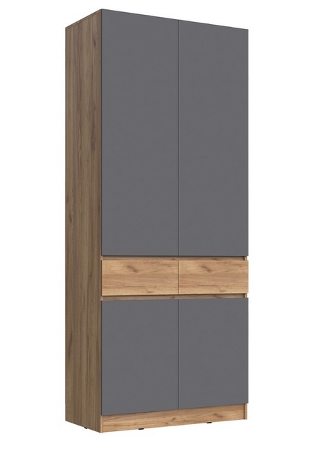 Особенности: Шкаф двухстворчатый Роджина (дуб крафт, графит) стильный и функциональный. Элегантный дизайн и современная отделка. Дверцы - распашные. Штанга для вешалок в комплекте Металлические ручки. Максимальная нагрузка на полку - 4 кг. Максимальная нагрузка на штангу - 10 кг.