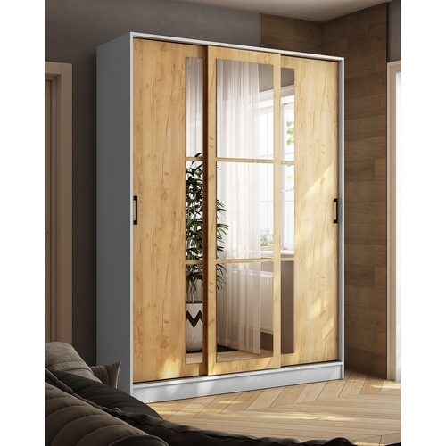 Особенности Шкафа-купе Стиль-2 160: Декор - белый с тиснением "древесные опоры". Шкаф оснащен штангой для вешалок и полками. Зеркальный фасад.