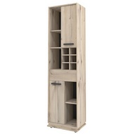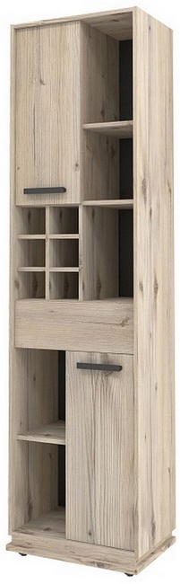 Технические характеристики: Крепится на стену за подвесы. Регулируемые опоры, которые помогут компенсировать неровности пола. Ручки из массива дерева. Ящик открывается за свес. Встроенная подсветка. Шкаф оснащен открытыми полками, борной нишей, выдвижным ящиком и двумя закрытыми секциями с полкой. Ящики на шариковых направляющих.