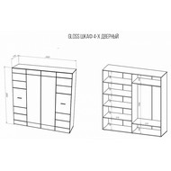 Ширина, см: 200. Высота, см: 205. Выступ, см: 55,6. Вес (кг): 192. Компоненты, входящие в комплект: 1 штанга для вешалок, 4 дверцы, 6 полок. Стиль: модерн. Страна-производитель: Россия. Объем (м3): 0.25. Основной цвет: разноцветная. Материал фасада: зеркало, МДФ. Материал корпуса: ЛДСП Е1. Тип поверхности корпуса: матовый. Место размещения: Пол. Помещение: Гостиная, Кабинет, Прихожая, Спальня. Гарантия (месяц): 24. Основное помещение: Гостиная. Цвет корпуса: белый. Цвет фасада: белый, зеркальный.