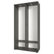 Длина, см: 100. Ширина, см: 100. Высота, см: 185. Выступ, см: 40. Размер упаковки, (мм): 1820x545x40. Вес (кг): 65.74. Компоненты, входящие в комплект: 2 дверцы, 2 полки, 2 штанги для вешалок. Стиль: модерн. Страна-производитель: Россия. Объем (м3): 0.083. Количество секций для хранения: нет. Основной цвет: разноцветная. Материал фасада: ЛДСП Е1. Материал корпуса: ЛДСП Е1. Тип поверхности корпуса: матовый. Дополнительные параметры: опора квадрат - 55х55х20 (мм). Место размещения: Пол. Помещение: Гостиная, Кабинет, Прихожая, Спальня. Гарантия (месяц): 24. Основное помещение: Гостиная. Цвет корпуса: серый. Цвет фасада: серый.