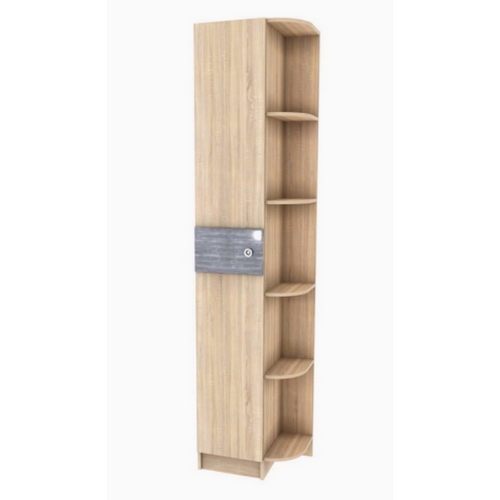 Особенности Торцевого шкафа Мадлен: Торцевой шкаф Мадлен совмещает в себе функционал полноценного шкафа-пенала и углового завершения. Устанавливается как в качестве отдельного модуля, так и в комплекте с другими шкафами из данной коллекции. Актуальный стиль. Универсальная цветовая гамма. Изящная фурнитура. Хорошая вместимость за счет комплекта полок. Сочетание открытых и закрытых зон хранения. Универсальная сборка.