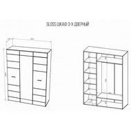 Комплектация: 1 штанга для вешалок, 3 дверцы, 6 полок.