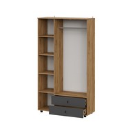 Особенности: Шкаф трехстворчатый с ящиками Байкал (дуб золотой/графит) оснашен распашными дверями с удобными ручками. Штанга для вешалок в комплекте. Максимальная нагрузка на полку: 5 кг