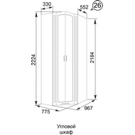 Технические характеристики: Внутри шкафа расположены две полки и две перекладины для вешалок. Дверные петли с доводчиками. Регулируемые опоры. Поставляется в разобранном виде.
