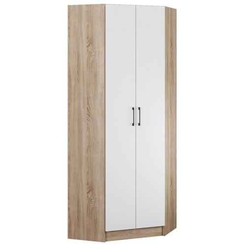 Особенности Шкафа углового Денвер: Угловой шкаф для одежды Денвер содержит набор полок и штангу. Хорошая вместимость. Разноплановое наполнение. Черные металлические ручки. Возможность установки в малогабаритном помещении.