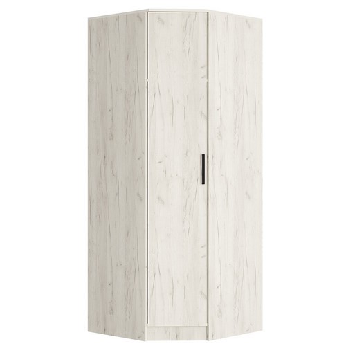 Особенности: Шкаф угловой Фиеста (дуб крафт белый) наполнение со штангой и многочисленными полками позволит разместить одежду и обувь. Материал каркаса: ЛДСП. Материал фасада: ЛДСП. Ручки: Накладные, пластик, 192 мм. Петли створок 4-х шарнирные накладные. Штанга для вешалок в комплекте. Максимальная нагрузка на полку: 10 кг. Максимальная нагрузка на штангу: 10 кг.
