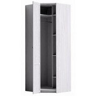 Особенности Шкафа углового Sherlock 63: Комплектуется внутренним стеллажом с полками, регулируемыми по высоте, и длинной стационарной штангой для вещей на плечиках. Автоматическая беспроводная подсветка включается при открытии двери, не требует сложной установки. Крепление к стене за подвесы.