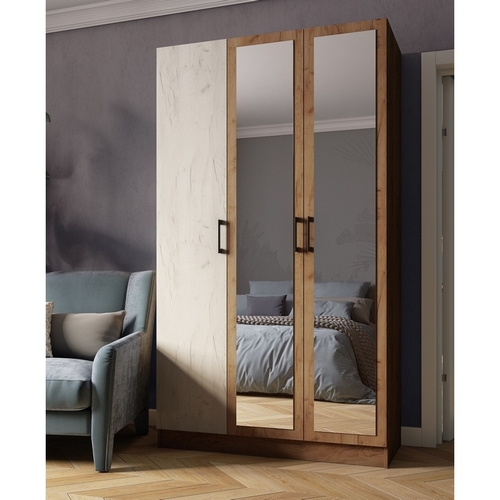 Особенности Шкафа Вегас 120: Шкаф оснащен широкой стационарной штангой для одежды на плечиках и комплектом полок для вещей. Зеркальные двери. Стильная лицевая фурнитура. Разноплановое наполнение.