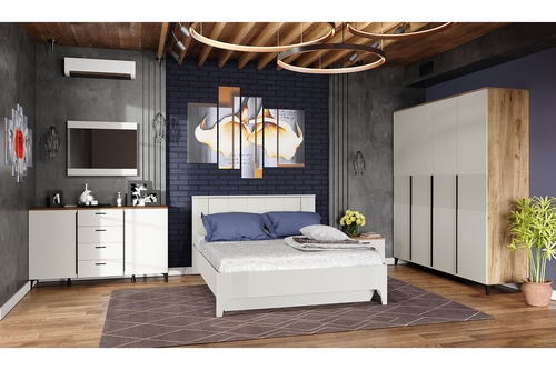 Особенности: Двуспальная кровать Белла 160х200 с ортопедическим основанием и подъемным механизмом сочетает отличную функциональность и стильный дизайн. Основание из металлического каркаса со встроенными широкими ламелями обеспечивают оптимальную опору спального места. Подъемный механизм облегчает доступ к системе хранения под матрасом. Мягкая вставка в изголовье выполнена в ткани экокожа chili white. Вместительный 4-х дверный шкаф для платья и белья позволит разместить весь гардероб. Петли накладные с доводчиком обеспечивают плавное и бесшумное закрывание дверей. Для плавного открывания и закрывания, ящики оснащены шариковыми направляющими полного выдвижения. Зеркало Белла выполненное в современном стиле, станет прекрасным дополнением интерьера. Комод и прикроватная тумба с выдвижными ящиками помогут организовать удобную систему хранения вещей и наслаждаться комфортом в своем доме. Рельеф на фасадах добавляет изделию особую изюминку и делает его внешний вид ещё более привлекательным. Матрас и выдвижные ящики не входит в комплект и приобретается отдельно. Регулируемые опоры позволяют надежно установить мебель на любой поверхности. Каркас из ЛДСП и фасад из МДФ обеспечивают прочность и долговечность мебели. Реальный цвет товара может отличаться от цвета товара на фотографии.