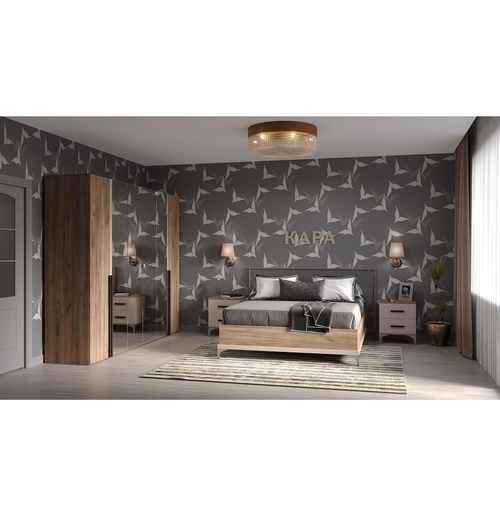Комплектация: кровать Кара 9 (00-00142469), тумба прикроватная Кара 2 (00-00142463) - 2 шт., шкаф 6-ти дверный Кара 7 (00-00142465).