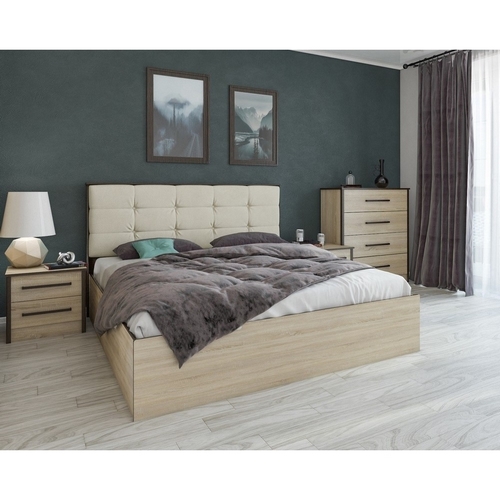 Особенности Спальни Лирика: Комплект состоит из двуспальной кровати и двух прикроватных тумб. Четкие геометрические формы и минималистичный дизайн. Матрас не входит в комплект и приобретается отдельно.