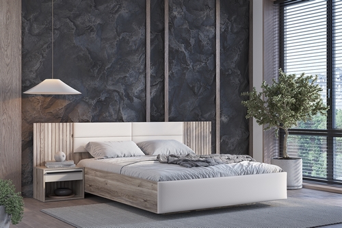 Особенности: Комплект мебели Урбан станет стильным и практичным решением для создания уютной и функциональной спальни. Двуспальная кровать с подъёмным механизмом Урбан КР-18 имеет простую и надежную конструкцию из ЛДСП, легкую в сборке. В комплект входит ортопедическое основание с подъемным механизмом. Изголовье кровати из ДСП декорировано мягкими прямоугольными накладками из велюровой ткани. Рекомендуемая высота матраса не более 20 см. Максимальная нагрузка на спальное место составляет 110 кг. Матрас не входит в комплектацию и приобретаются отдельно. Прикроватная тумба Урбан ТБ-11 оснащена выдвижным ящиком с удобной накладной ручкой и открытой нишей. Крышку тумбы также можно использовать для размещения светильника или других вещей необходимых в спальне. Высокая задняя стенка гармонично сочетается с мягким изголовьем кровати Урбан КР-18, создавая единый стиль. Задняя стенка декорирована фотопечатью, имитирующей вертикальные деревянные рейки. Максимальная нагрузка на ящик тумбы составляет 5 кг. Шариковые направляющие ящика обеспечивают плавное и бесшумное открывание. Корпус и фасад изготовлены из прочного и долговечного ЛДСП. Кромка толщиной 0,4-0,45 мм обеспечивает аккуратный и эстетичный вид. Пластиковые опоры с подпятниками обеспечивают устойчивость и защиту напольного покрытия. Можно компоновать с другими элементами из серии мебели Урбан. Поставляется в разборном виде. Инструкция в комплекте.