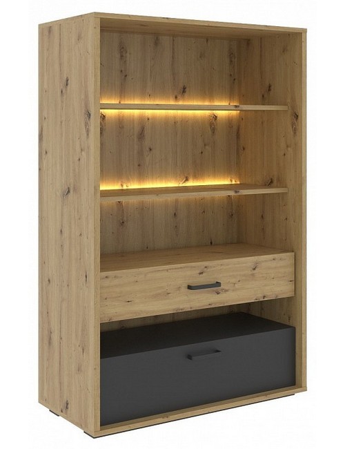 Ширина, см: 90. Высота, см: 138. Выступ, см: 42. Компоненты, входящие в комплект: 2 ящика, 3 полки. Стиль: модерн. Страна-производитель: Россия. Объем (м3): 0.077. Количество секций для хранения: 2. Основной цвет: разноцветная. Материал фасада: ЛДСП Е1. Материал корпуса: ЛДСП Е1. Тип поверхности корпуса: матовый. Дополнительное описание: В комплектацию входит светодиодная ленточная подсветка. Блок питания докупается отдельно. Место размещения: Пол. Помещение: Гостиная,Кабинет,Офис,Прихожая,Спальня. Гарантия (месяц): 24. Основное помещение: Офис. Цвет корпуса: дуб артизан. Цвет фасада: дуб артизан, черный.