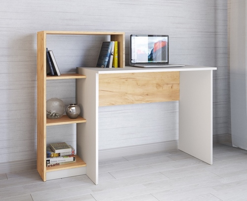 Стол компьютерный со стеллажом Квартет-2 (белый, дуб крафт золотой)