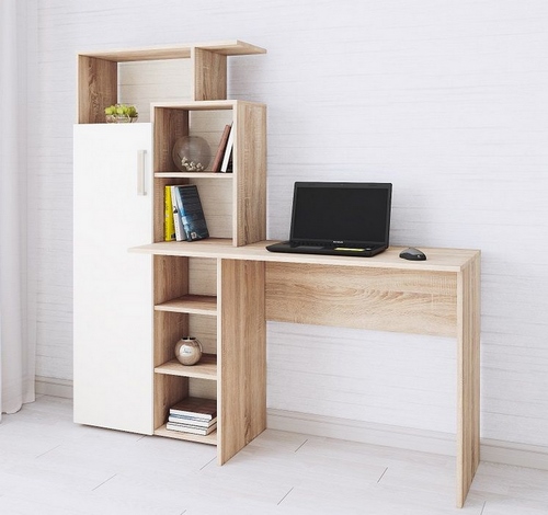 Стол компьютерный со стеллажом Квартет-7 (белый, дуб сонома)