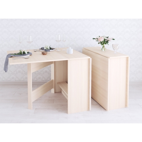 Особенности Стола кухонного раскладного: Раскладной стол для кухни имеет 3 положения: полностью сложенный, разложенный наполовину и полностью разложенный. Пластиковые подпятники, предохраняющие напольные покрытия от повреждения. Компактен в собранном виде. Размер в разложенном виде - 85х75х102/174 см.