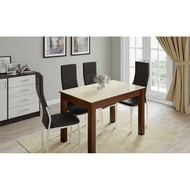 Особенности Стола обеденного раскладного Бруно 80: Столешница выполнена из высококлассного ЛДСП и покрыта стеклом лакобель ваниль. Опоры из МДФ облицованы защитной финиш-пленкой. В разложенном виде ширина столешницы увеличивается на 40 см. Механизм разложения - бабочка. Скругленные углы. Ширина столешницы в разложенном виде - 160 см.