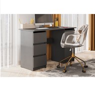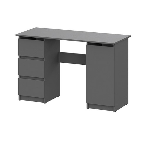 Особенности: Стол письменный 120 см Денвер графит имеет просторную рабочую поверхность, оснащен тремя выдвижными ящиками и откидной дверкой, за которой расположена полка. Направляющие роликовые. Скрытая фурнитура. Сборка стола универсальная. Нагрузка на столешницу 20 кг. Нагрузка на полки 5 кг.