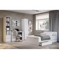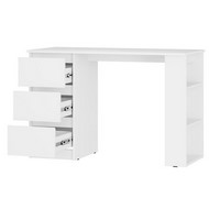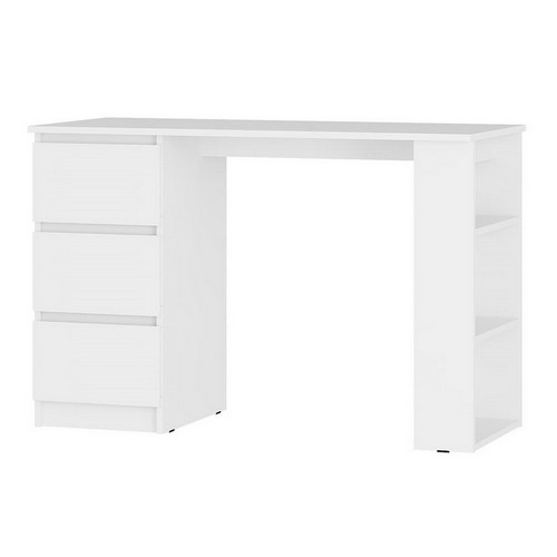 Особенности: Стол письменный Симпл ПС-07 (белый) — компактный, с большой столешницей. Тумба с тремя выдвижными ящиками и три открытые полки. Направляющие ящиков - шариковые. Максимальная нагрузка на ящик — 5 кг, на вязку — 10 кг.