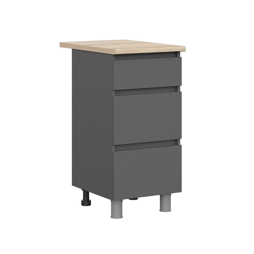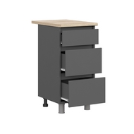 Особенности: Стол с ящиками и столешницей СЯ 400 Денвер, графит Напольная тумба с тремя выкатными ящиками. Матовые фасады со скрытой фурнитурой Направляющие роликовые. Столешница в комплекте. Можно компоновать с другими модулями из серии мебели Денвер. Реальный цвет товара может отличаться от цвета товара на фотографии. Поставляется в разобранном виде.