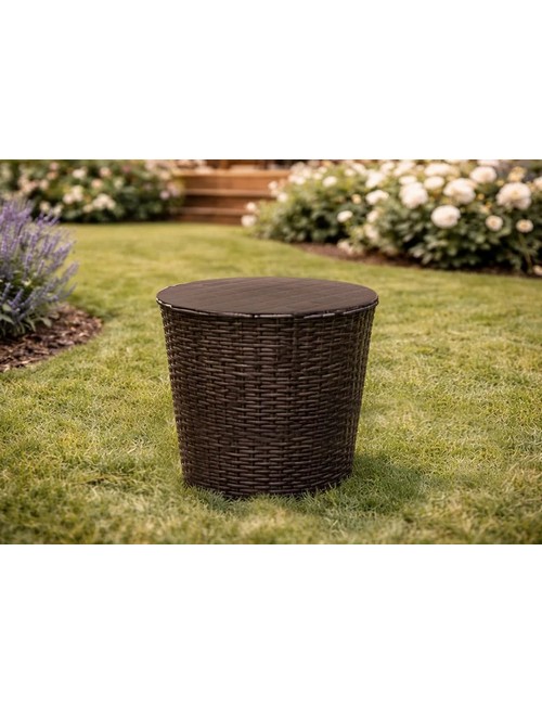 Технические характеристики: Столик под ротанг СадКо (темно-коричневый). Компактный и стильный кофейный столик с эффектным плетением под ротанг, созданный для удобного размещения напитков, книг и декора в зоне отдыха. Модель в универсальном цвете идеально дополняет садовые кресла и диваны, а низкая конструкция позволяет использовать его как журнальный или кофейный столик на террасе, в саду или у бассейна. Искусственное плетение под ротанг создает природную эстетику и уютную атмосферу. Специальное покрытие защищает столик от выцветания под солнечными лучами, сохраняя насыщенность цвета на долгие годы. Конструкция разработана для простой и интуитивно понятной сборки без использования специальных инструментов. Столик под ротанг СадКо станет стильным и функциональным дополнением вашего сада или террасы, создавая уютную атмосферу для отдыха и общения.