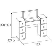 Особенности Столика туалетного Neo 43: Туалетный столик для ежедневного ухода за собой. Модуль оснащен 6-ью ящиками (ШхГхВ каждого 20х30х15 см) и откидной крышкой с зеркалом, под которой расположена скрытая ниша. Выдвижные ящики на шариковых направляющих. Ящики выдерживают нагрузку до 10 кг. Зеркало проклеено сзади специальной пленкой.