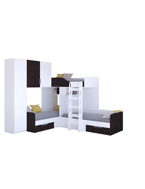 Технические характеристики: Трехместная кровать Трио 1 (белый, венге). Инновационная трехместная модель Трио 1, созданная для комфортного размещения троих детей. Конструкция предусматривает три полноценных спальных места, что делает ее идеальным решением для многодетных семей или для детской комнаты, где необходимо оптимально использовать пространство. Кровать трехместная Трио 1 имеет надежные бортики безопасности на верхнем ярусе. Удобная и безопасная лестница для доступа, просторные вместительные ящики для хранения и платяной шкаф, который можно установить с любой стороны. Направляющие ящиков - роликовые. Максимальная нагрузка на спальное место - 100 кг. Трехместная кровать Трио 1 - идеальное решение для организации комфортного сна троих детей в одной комнате. Варианты цвета фасадов:дуб молочный, дуб шамони, орех, оранжевый, голубой, салатовый, розовый, белый, венге, железный камень, сонома. Для уточнения деталей рекомендуем проконсультироваться с нашими специалистами.