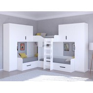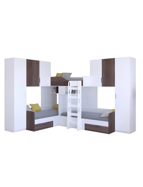 Технические характеристики: Трехместная кровать Трио 3 (белый, дуб шамони). Инновационная трехместная модель Трио 3, созданная для комфортного размещения троих детей. Конструкция предусматривает три полноценных спальных места, что делает ее идеальным решением для многодетных семей или для детской комнаты, где необходимо оптимально использовать пространство. Кровать трехместная Трио 3 имеет надежные бортики безопасности на верхнем ярусе. Удобная и безопасная лестница для доступа, просторные вместительные ящики для хранения и два больших шкафа с каждой стороны. Направляющие ящиков - роликовые. Максимальная нагрузка на спальное место - 100 кг. Трехместная кровать Трио 3 - идеальное решение для организации комфортного сна троих детей в одной комнате. Варианты цвета фасадов:дуб молочный, дуб шамони, орех, оранжевый, голубой, салатовый, розовый, белый, венге, железный камень, сонома. Для уточнения деталей рекомендуем проконсультироваться с нашими специалистами.