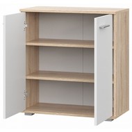 Ширина, см: 69. Высота, см: 74. Выступ, см: 34. Вес (кг): 21. Компоненты, входящие в комплект: 2 дверцы, 2 полки. Стиль: модерн. Страна-производитель: Россия. Объем (м3): 0.036. Основной цвет: разноцветная. Материал фасада: ЛДСП Е1. Материал корпуса: ЛДСП Е1. Тип поверхности корпуса: матовый. Место размещения: Пол. Помещение: Гостиная, Кабинет, Прихожая, Спальня. Гарантия (месяц): 24. Основное помещение: Гостиная. Цвет корпуса: дуб сонома. Цвет фасада: белый.