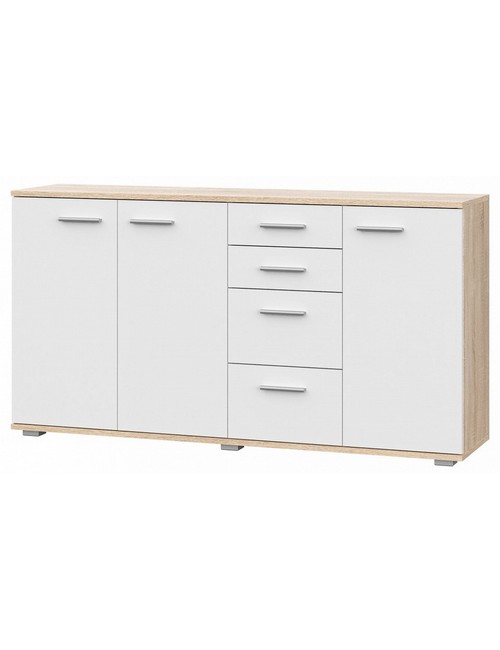 Ширина, см: 137,8. Высота, см: 74. Выступ, см: 34. Вес (кг): 44. Компоненты, входящие в комплект: 3 дверцы, 4 полки, 4 ящика. Стиль: модерн. Страна-производитель: Россия. Объем (м3): 0.086. Количество секций для хранения: 4. Основной цвет: разноцветная. Материал фасада: ЛДСП Е1. Материал корпуса: ЛДСП Е1. Тип поверхности корпуса: матовый. Место размещения: Пол. Помещение: Гостиная, Кабинет, Прихожая, Спальня. Гарантия (месяц): 24. Основное помещение: Гостиная. Цвет корпуса: дуб сонома. Цвет фасада: белый.