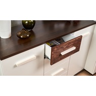 Материалы: ЛДСП 16 мм, дно ящика ХДФО 3 мм, задняя стенка ХДФО, регулируемые опоры, шариковые направляющие, ЛДСП 22 мм.