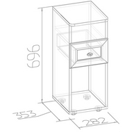 Технические характеристики: Прикроватная тумба оснащена одним выдвижным ящиком и двумя открытыми секциями. Выдвижной ящик на шариковых направляющих. Максимальная нагрузка на ящик до 5 кг. Регулируемые опоры.