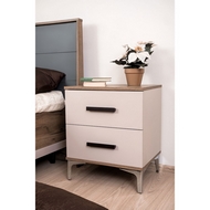 Особенности Тумбы прикроватной Кара: Тумба с двумя ящиками в спальню. Фигурные металлические опоры. Шариковые направляющие плавного выдвижения. Низ и столешница из контрастной плиты ЛДСП.