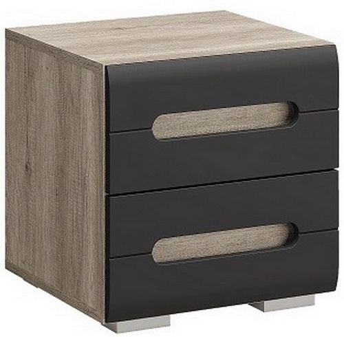 Технические характеристики: Прикроватная тумба с двумя выдвижными ящиками. Матовый фасад цвета графит. Ручки с декором под дубовый спил.