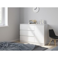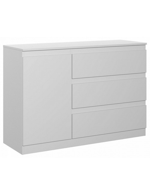 Ширина, см: 123,2. Высота, см: 85,7. Выступ, см: 43,3. Размер упаковки, (мм): 1250x445x95, 875x480x60. Вес (кг): 58. Компоненты, входящие в комплект: 1 дверца, 1 полка, 3 ящика. Стиль: модерн. Страна-производитель: Россия. Объем (м3): 0.078. Количество секций для хранения: 3. Основной цвет: разноцветная. Материал фасада: ЛДСП Е1. Материал корпуса: ЛДСП Е1. Тип поверхности корпуса: матовый. Место размещения: Пол. Помещение: Гостиная, Кабинет, Прихожая, Спальня. Гарантия (месяц): 24. Основное помещение: Гостиная. Цвет корпуса: белый. Цвет фасада: белый.